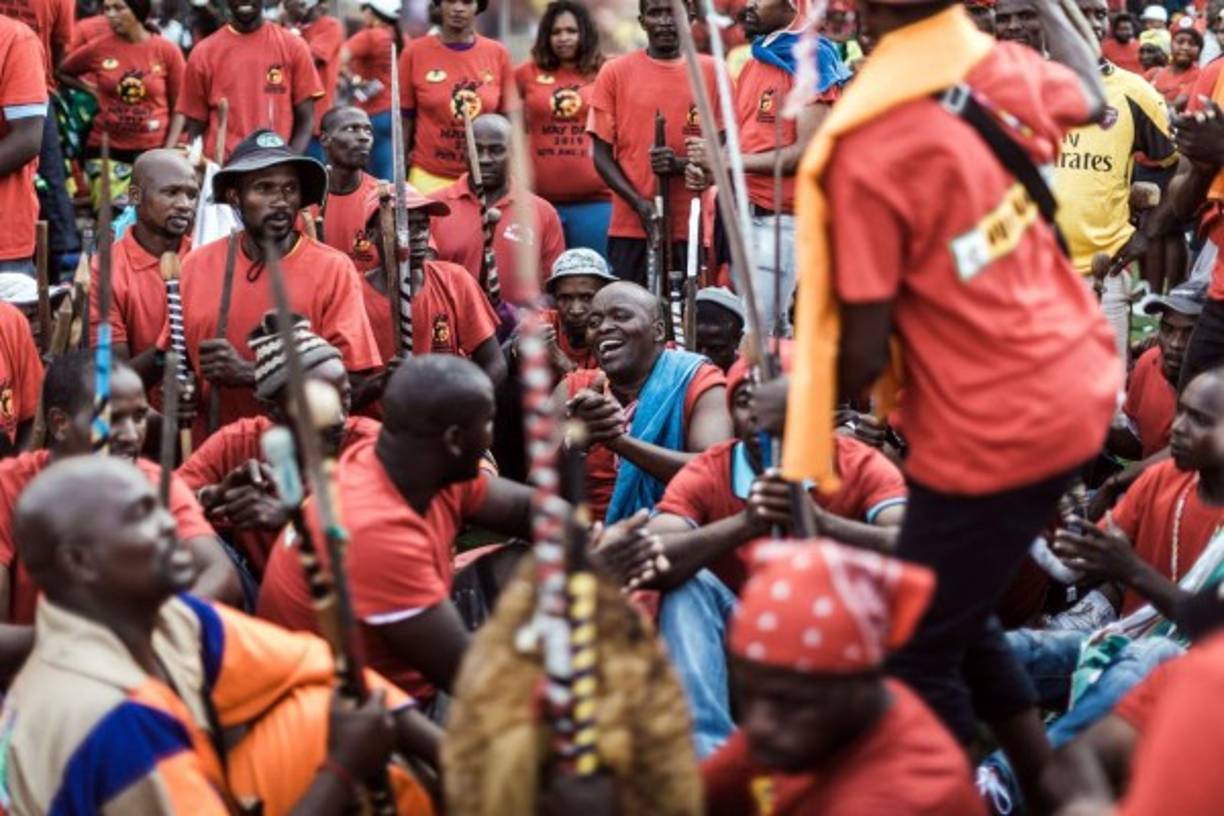 16 / 16Workers attend a rally called by South Africa's largest union, the Congress of South African Trade Unions (COSATU), the South African Communist Party (SACP) and the African National Congress (ANC) to mark May Day - the International Workers' Day at the Sugar Ray Xulu stadium in Clermont township, north of Durban, on May 1, 2019. - Voting this year for the general election will mark 25 years since the end of apartheid rule. (Photo by RAJESH JANTILAL / AFP)