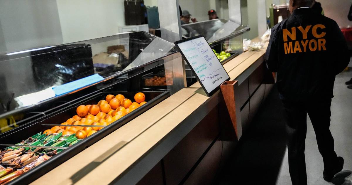 8 / 13“‘No importa si es la isla Ellis o la Terminal de cruceros de Brooklyn o cualquiera de nuestros puertos. Todo está enraizado en el Sueño Americano. Persigues el sueño aquí”, dijo el alcalde a los medios tras recorrer el albergue.