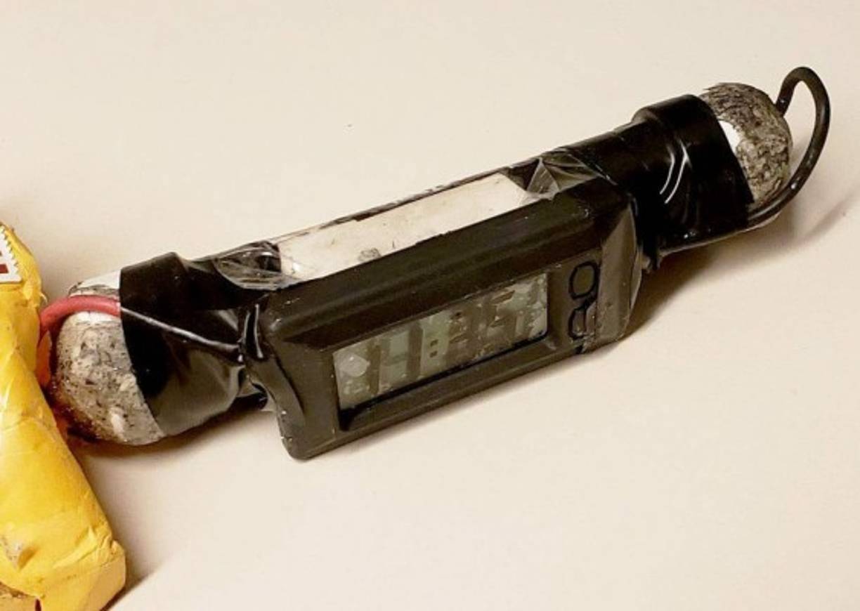 2 / 13Los artefactos caseros fueron construidos con una tubería de metal con cables y lo que parece un detonador, indicaron las autoridades. -