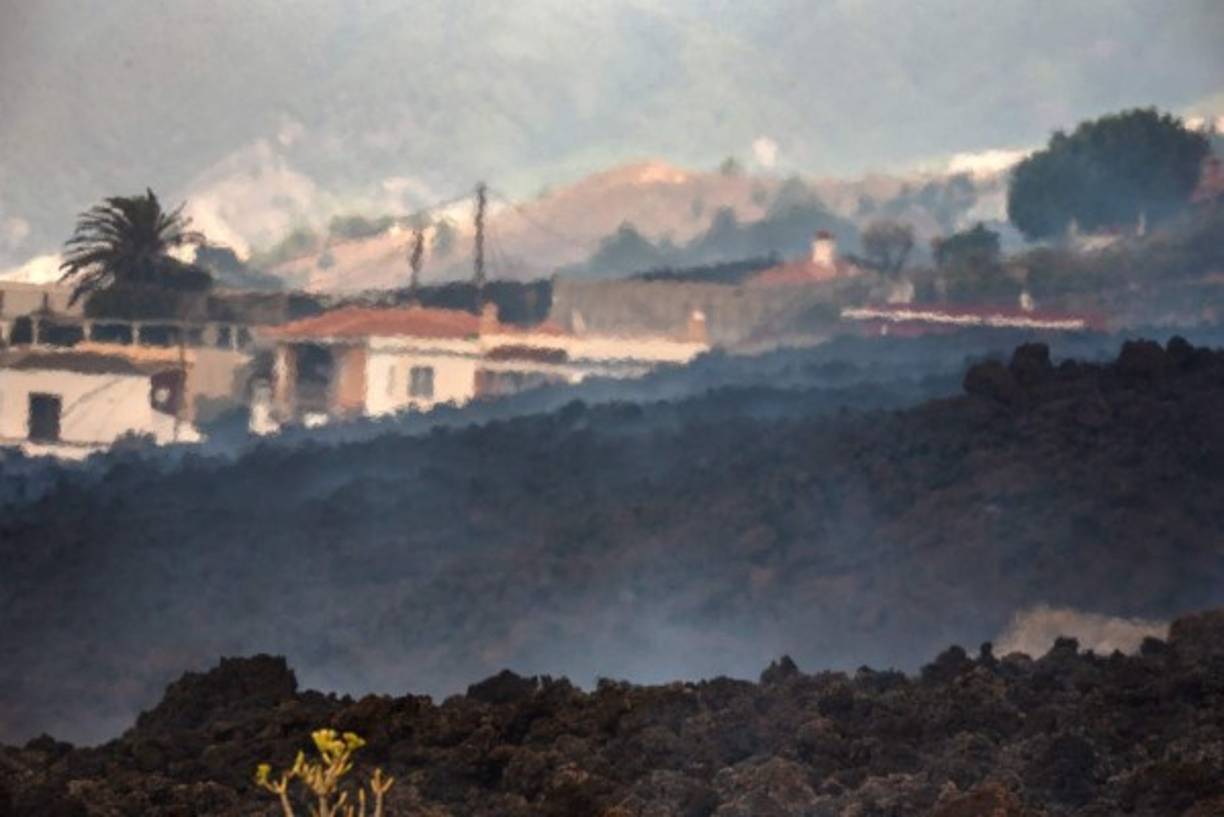 8 / 11Smoke rises from cooling lava in the residential area of Los Campitos at Los Llanos de Aridane, on the Canary Island of La Palma on September 20, 2021. - A surge of lava destroyed around 100 homes on Spain's Canary Islands a day after a volcano erupted, forcing 5,000 people to leave the area. The Cumbre Vieja erupted on Sunday, sending vast plumes of thick black smoke into the sky and belching molten lava that oozed down the mountainside on the island of La Palma. (Photo by DESIREE MARTIN / AFP) -