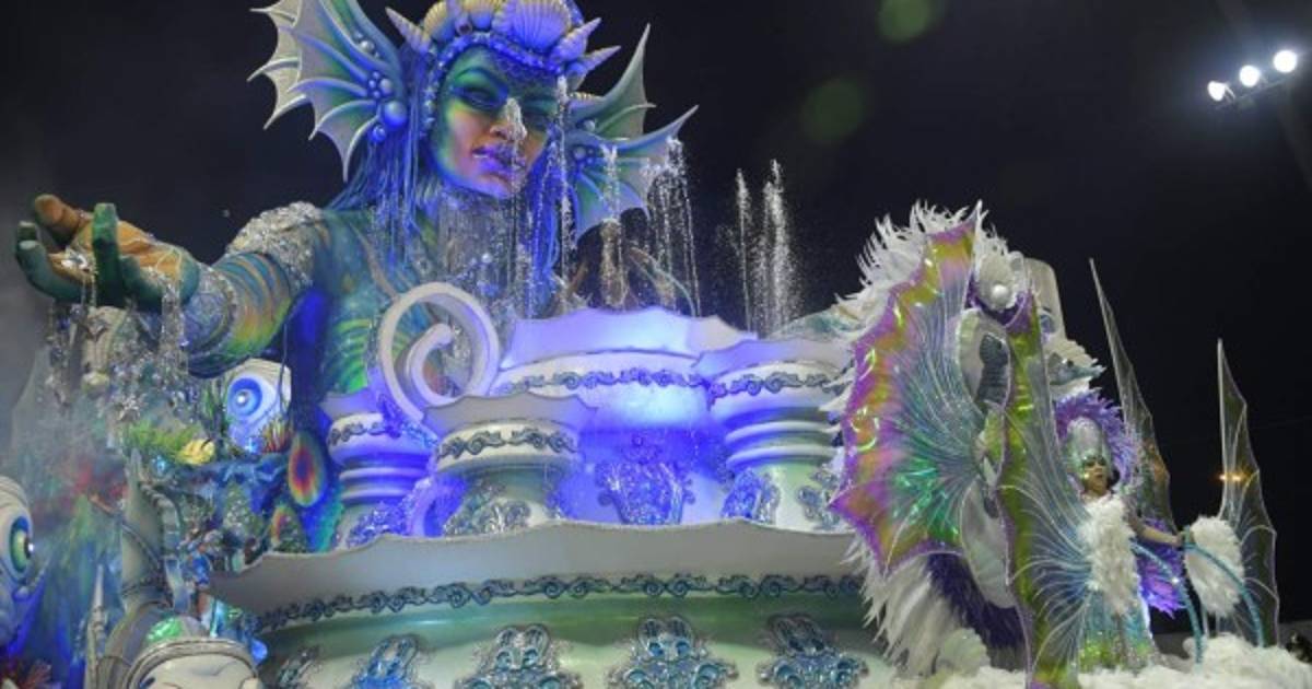 6 / 16La escuela Viradouro rindió un homenaje a la resistencia de mujeres esclavas en este país donde la esclavitud perduró hasta fines del siglo XIX. En la primera carroza, una sirena negra con una larga cola dorada nadaba en un acuario de 7.000 litros de agua mineral. -