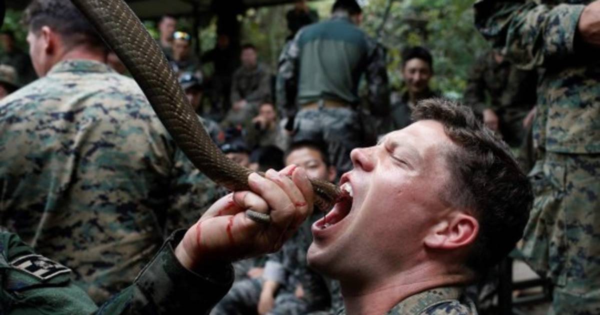 5 / 21Los instructores tailandeses enseñan a las tropas de Estados Unidos a capturalas cobras antes de realizarles cortes fatales para luego beber la sangre. -