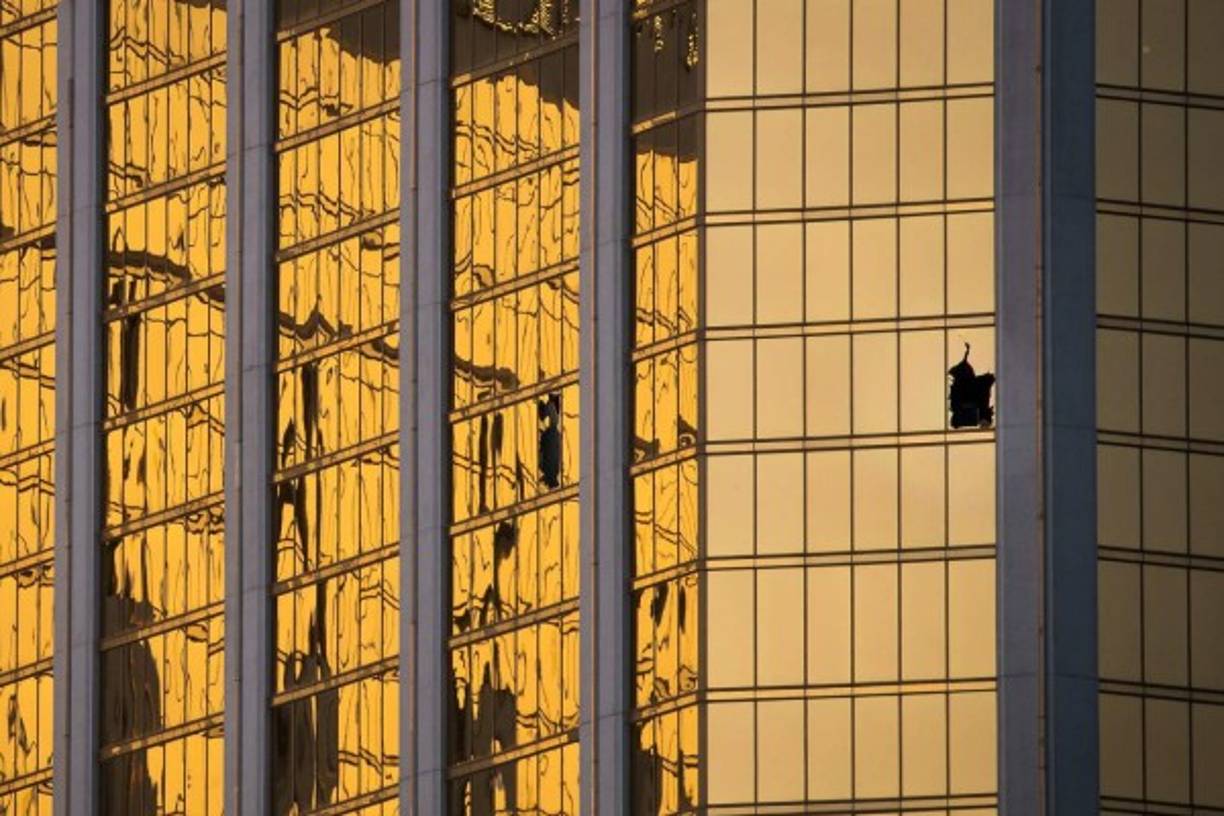 5 / 15Una ventana quebrada del del hotel Mandalay Bay en el piso 32. -