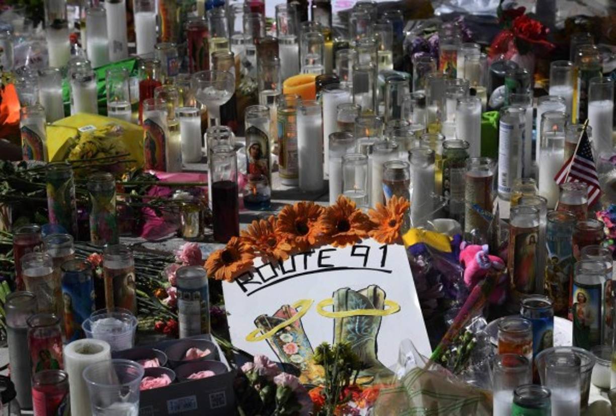 11 / 15Velas colocadas en un monumento improvisado en el Strip de Las Vegas, Nevada. -