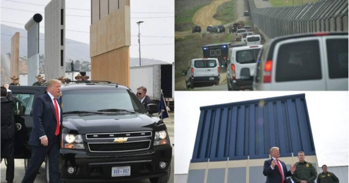 2 / 15En una inédita imagen, la caravana presidencial recorrió la valla fronteriza en San Diego, California, donde fueron erigidos los gigantes prototipos del muro que el magnate pretende construir en dicha frontera. -