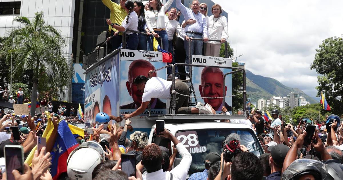 3 / 10La líder opositora María Corina Machado y el candidato presidencial del bloque antichavista, Edmundo González Urrutia, ofrecieron un discurso en el que reiteraron que la “lucha” que promueven es pacífica y busca que las autoridades reconozcan que el chavismo, en el poder desde 1999, perdió los comicios.
