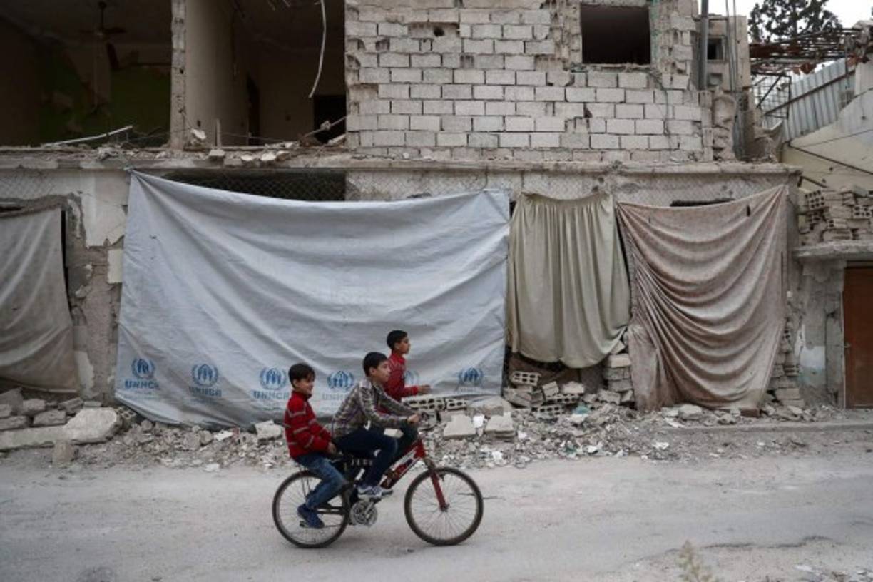 2 / 6SIRIA. Un paseo entre las ruinas. Niños sirios juegan en la ciudad de Douma, bombardeada por el régimen de Asad tras ser tomada por los rebeldes. Foto: AFP/Abd Doumany -
