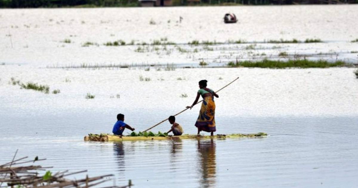 1 / 6INDIA. En medio de la inundación. Una mujer y sus hijos cruzan en una balsa por una de las zonas afectadas por las inundaciones en Morigaon. Foto: EFE -
