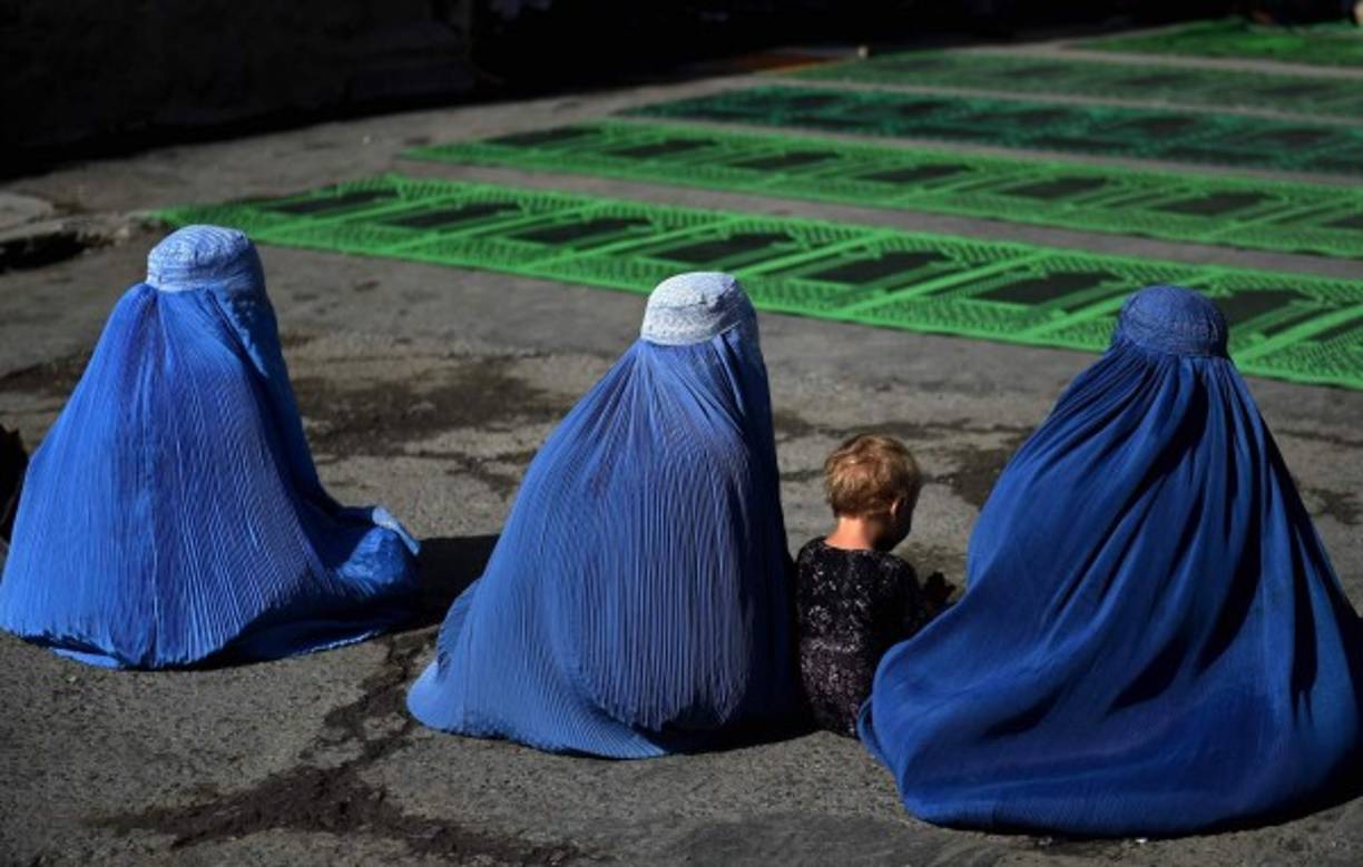 5 / 6KABUL. En espera de una limosna. Mujeres vestidas con burka piden limosna en la mezquita Shah-e Do Shamshira en Kabul. Foto: AFP/Wakil Kohsar -