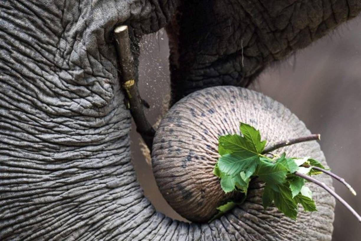 2 / 6ALEMANIA. Hora del almuerzo. Un elefante asiático come unas hojas frescas en el zoológico Hagenbeck en Hamburgo. Foto: EFE/Lukas Schulze -