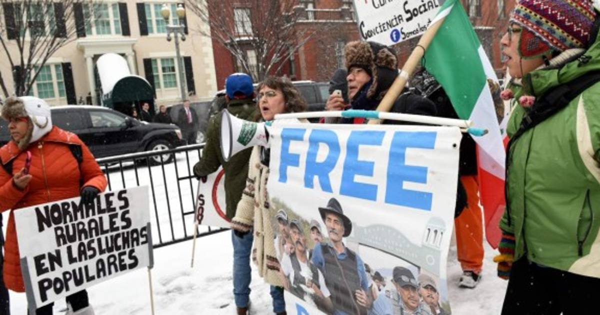 4 / 6'Plan Merida USA Puts the guns Mexico puts death Ayotzinapa 43' (Plan Mérida EU pone los cañones México pone muerte Ayotzinapa 43), se leía en una de las pancartas. -