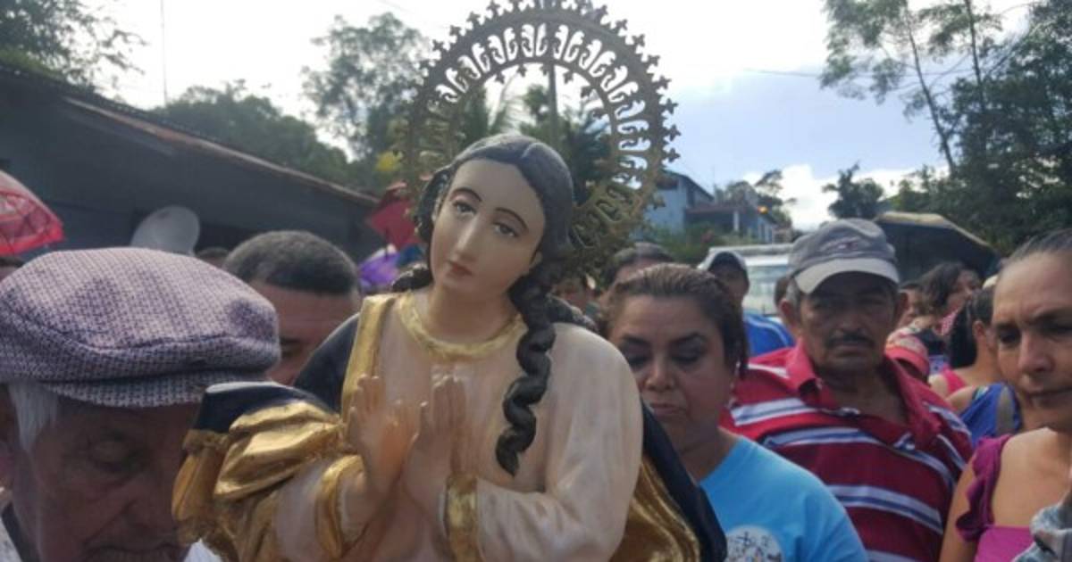2 / 7El Cristo Negro y la virgen recorren a pie desde el municipio de Ilama hasta llegar a Gualala donde son esperados por muchos fieles con música de marimba y de banda.