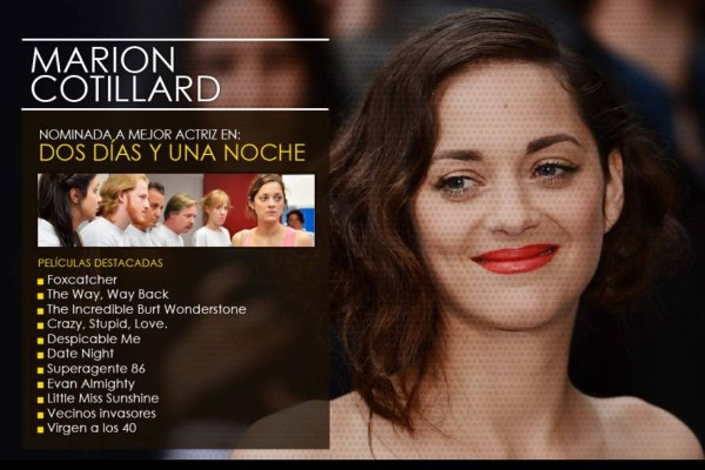 3 / 5Actriz y cantante originaria de Francia, es la única mujer que ha ganado un Óscar a la mejor actriz por una película francesa. -