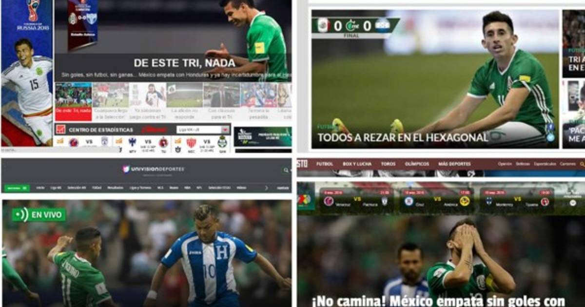 17 / 18Mundoejecutivo.com.mx: 'El Tri, decepcionante; aburre patético 0-0 con Honduras. La selección mexicana de futbol empató a cero goles con Honduras, en la última fecha del cuadrangular previo a la eliminatoria definitiva para clasificar al Mundial de Rusia 2018'. -