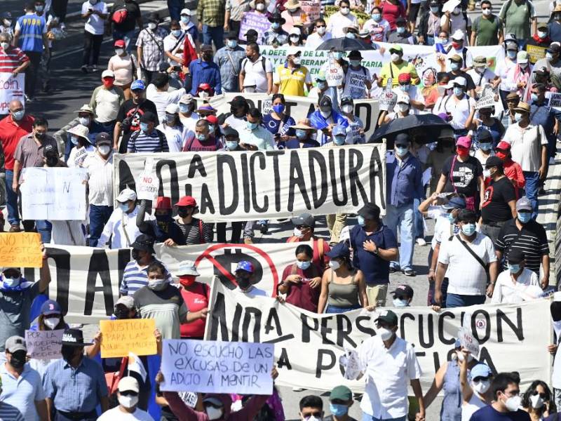 4 / 12“La gente se está comenzando a cansar de este gobierno autoritario, antidemocrático, nos está llevando por un despeñadero con sus malas ideas que ya afectan la economía con ese bitcóin”, comentó a la AFP Ricardo Navarro, director de la oenegé ecologista Centro Salvadoreño de Tecnología Apropiada (CESTA). -