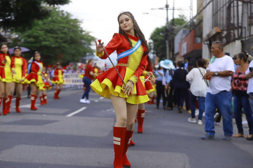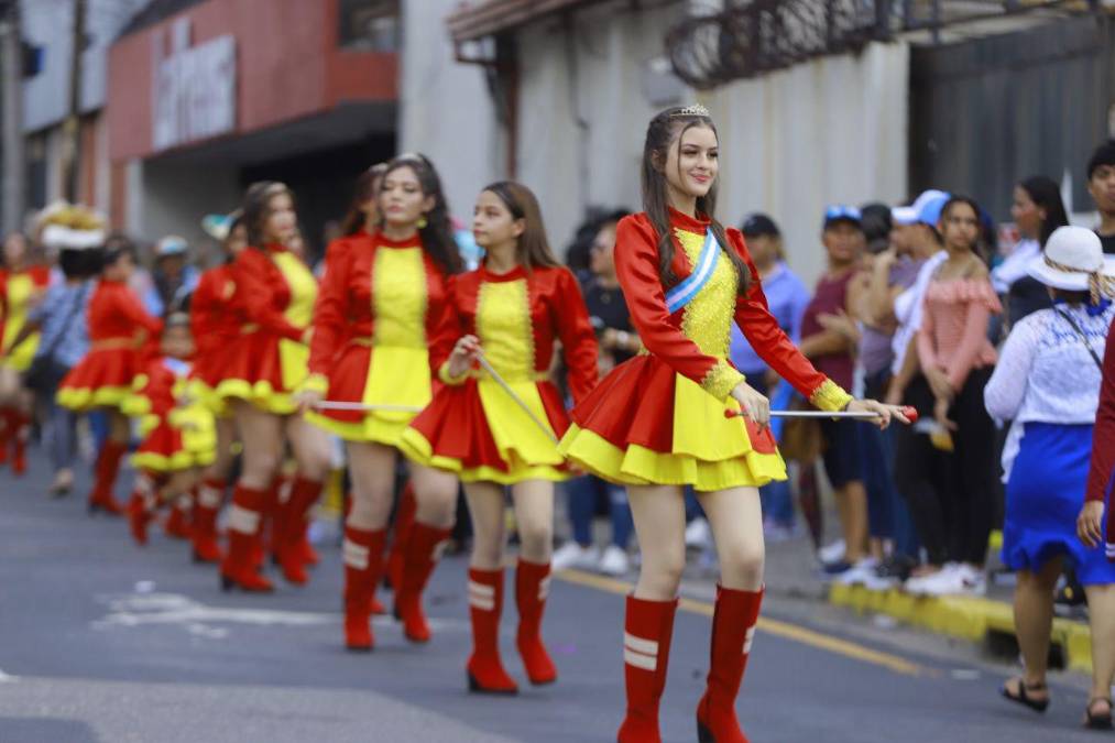 Las guapas y talentosas chicas del Jesús de Nazareth acapararon miradas durante el recorrido que hicieron por la tercera avenida de San Pedro Sula.