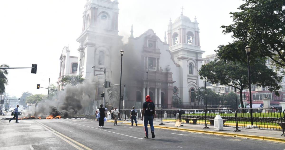 Humo negro ascendió al cielo de San Pedro Sula por una protesta frente al parque central.