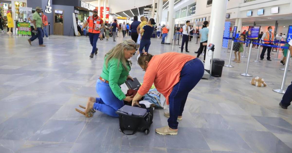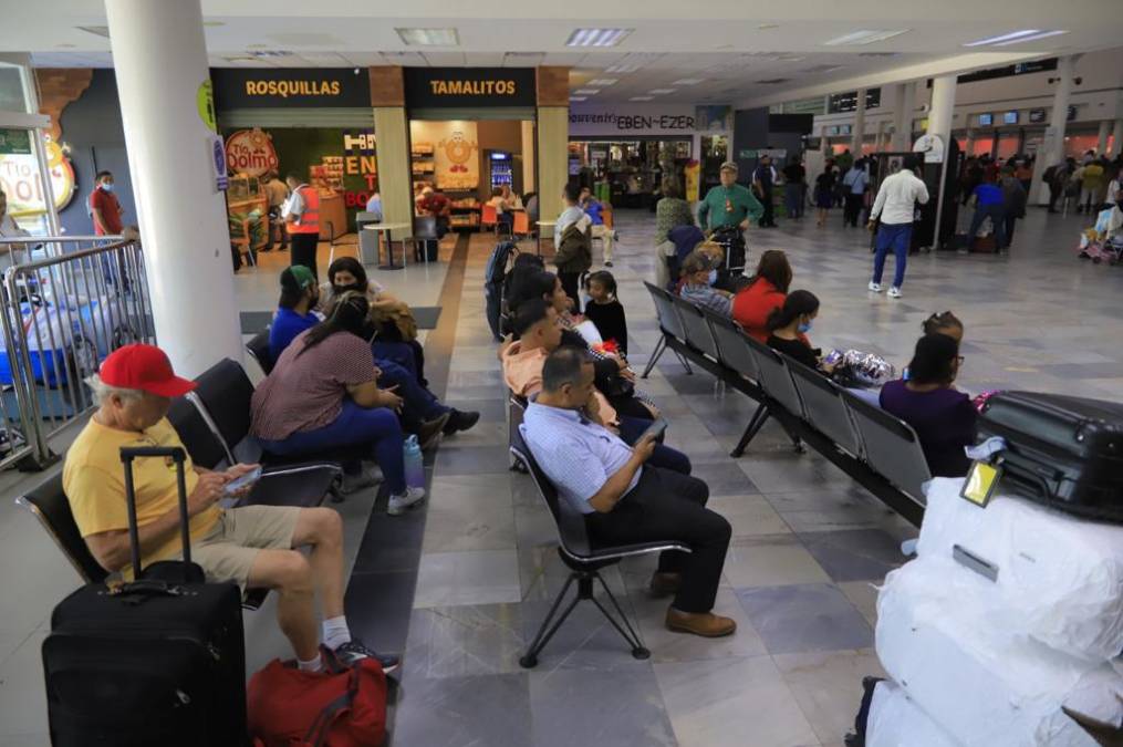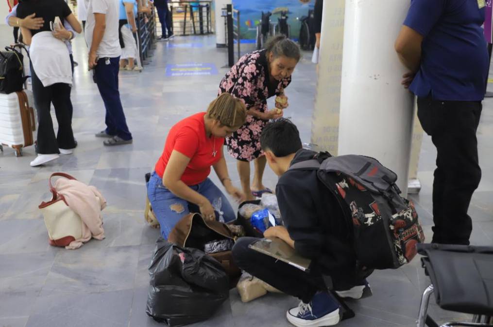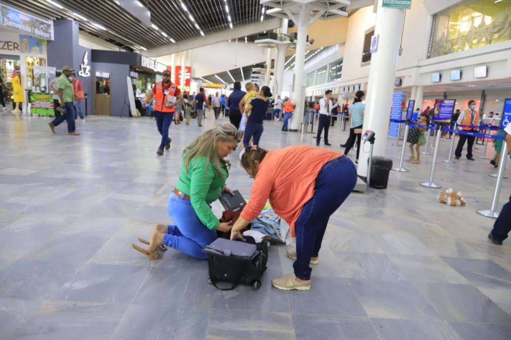1 / 16Personas de diferentes partes del país llegan al aeropuerto sampedrano y deben hacer cambios en sus maletas en el suelo porque no hay áreas modernas de descanso ni espera.