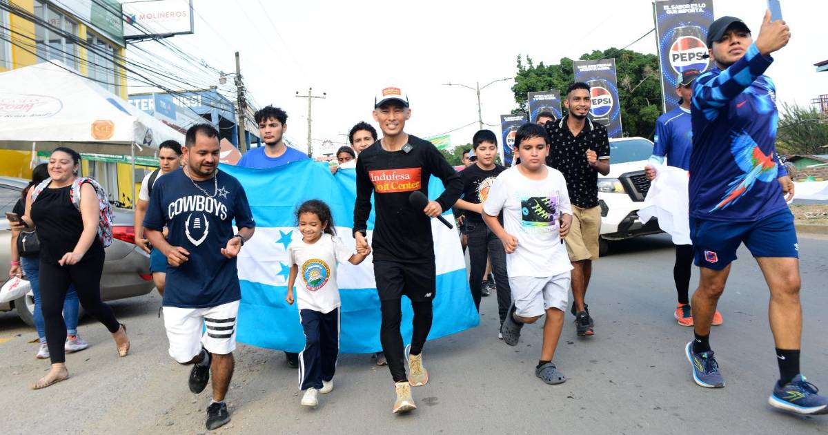 Shin Fujiyama partió este viernes de Chamelecón en su reto de correr 250 kilómetros hasta Tegucigalpa.