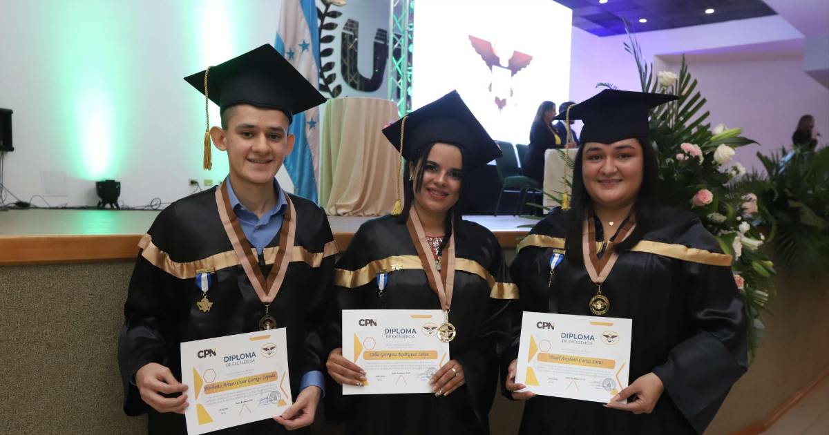 1 / 12El Centro Politécnico del Norte (CPN) festejó a 98 alumnos por la culminación de sus estudios en Bachiller en Ciencias y Humanidades. El salón Julián Arriaga de la Universidad Tecnológica de Honduras (UTH) recibió a centenares de familiares y amistades de los graduandos que también fueron parte de este importante logro. En esta postal, los tres primeros lugares de excelencia académica, Norberto Garrigo, Celia Rodríguez y Yissel Carías.