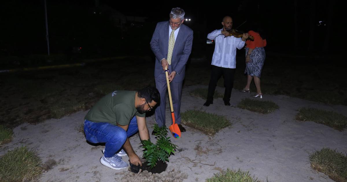 1 / 9Esta actividad fue en homenaje a Michaël Sowinski, exdirector de la Alianza Francesa de San Pedro Sula. En la imagen el embajador de Francia en Honduras, Cédric Prieto, mientras plantaba un árbol en el nuevo espacio cultural y ecológico.