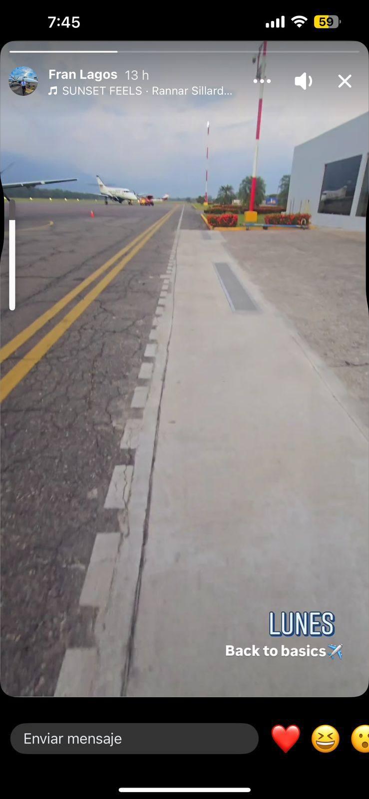 Horas antes del accidente, publicó dos videos desde el aeropuerto, sin imaginar que serían sus últimas imágenes en tierra.