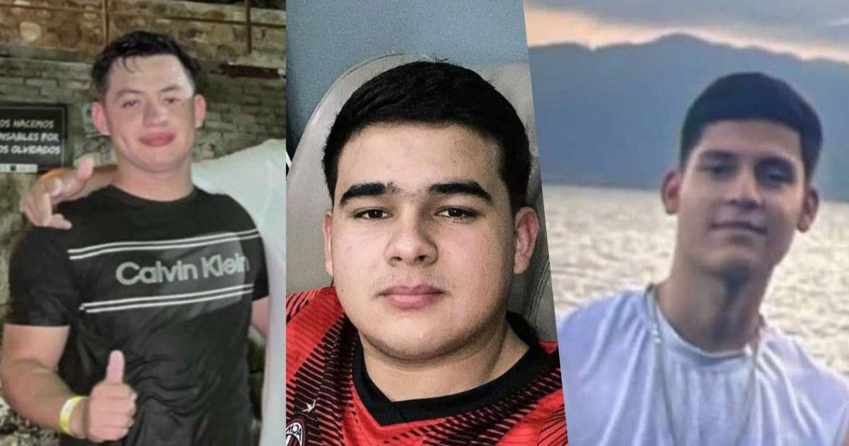 Fotos de Olvin Mejía, Fredy Valle y Alexis Romero; el promero está desaparecido, mientras el cuerpo de los otros dos ya fueron recuperados tras ahogarse en la playa Las Flores de La Libertad, El Salvador.