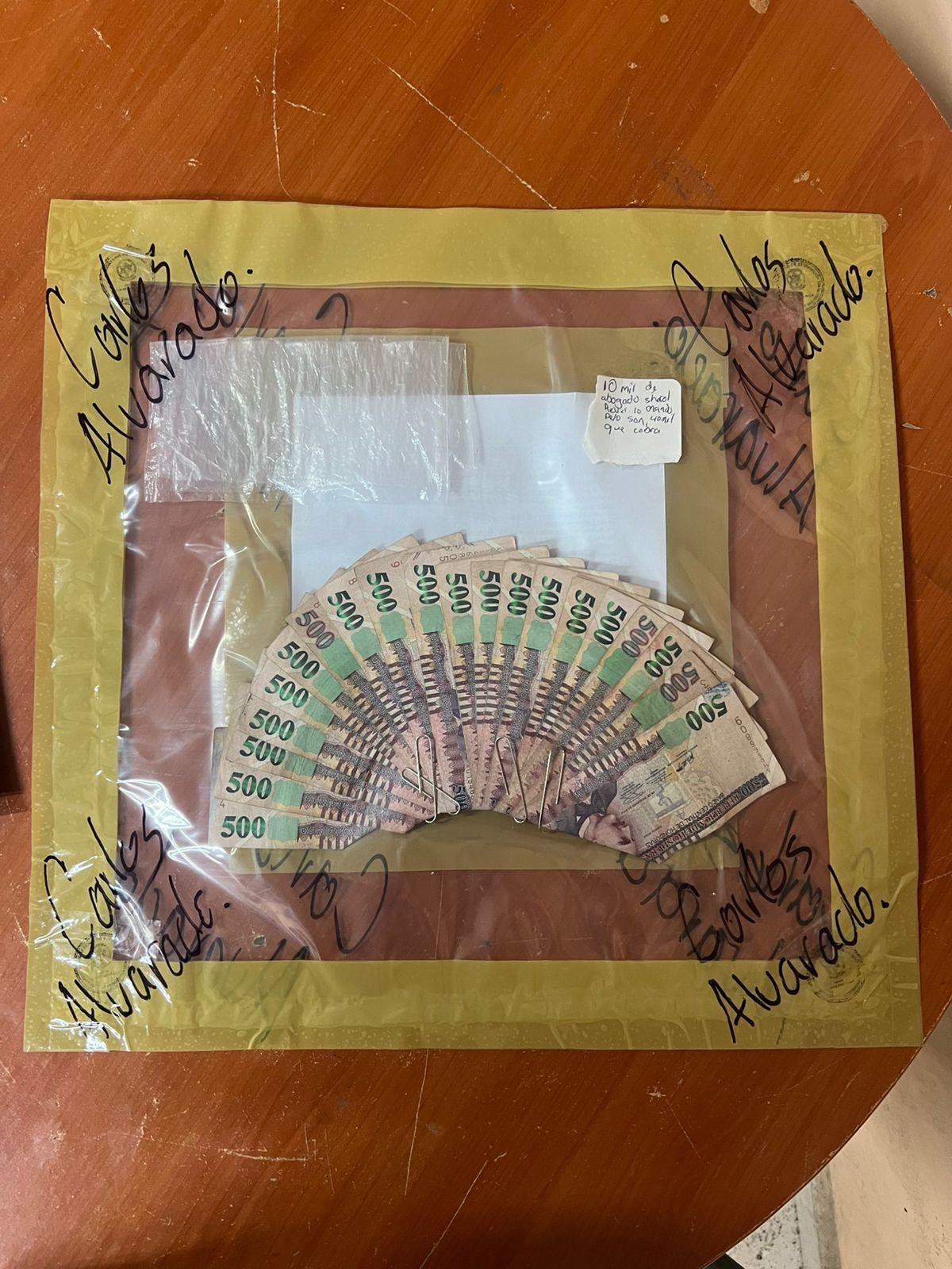 También se le incautó 10 mil lempiras en efectivo, dos celulares y un papel con anotaciones.