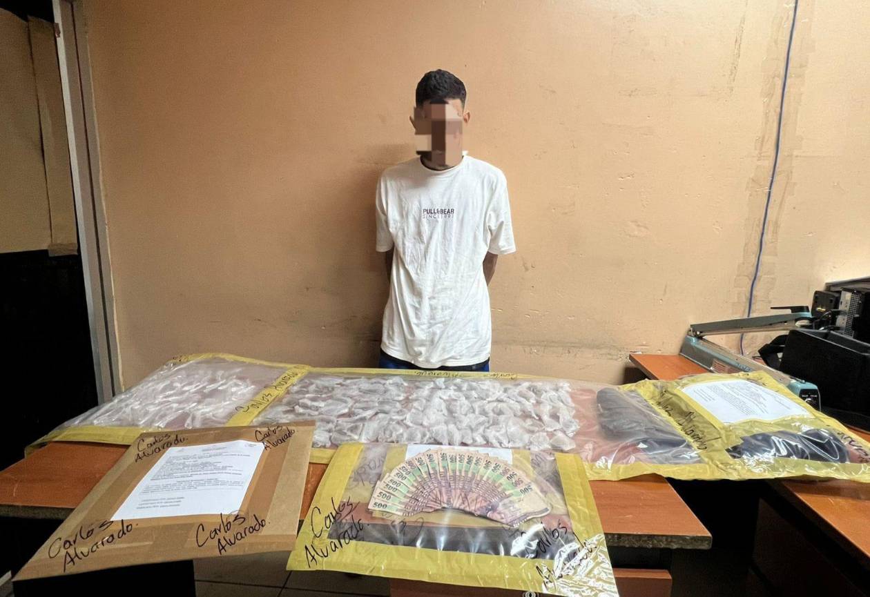 Al momento del arresto, se le decomisaron 80 bolsas con supuesta cocaína, 112 envoltorios con marihuana.