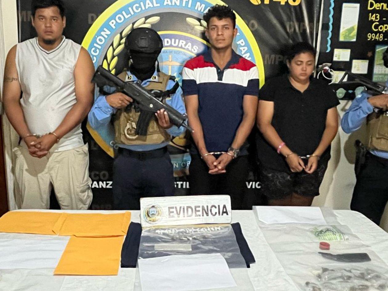 La Dirección Policial Anti Maras y Pandillas Contra el Crimen Organizado (Dipamco), mediante allanamiento de morada en el barrio El Carmen, San Pedro Copán, Copán se le dio detención a tres personas vinculadas a tráfico de drogas.