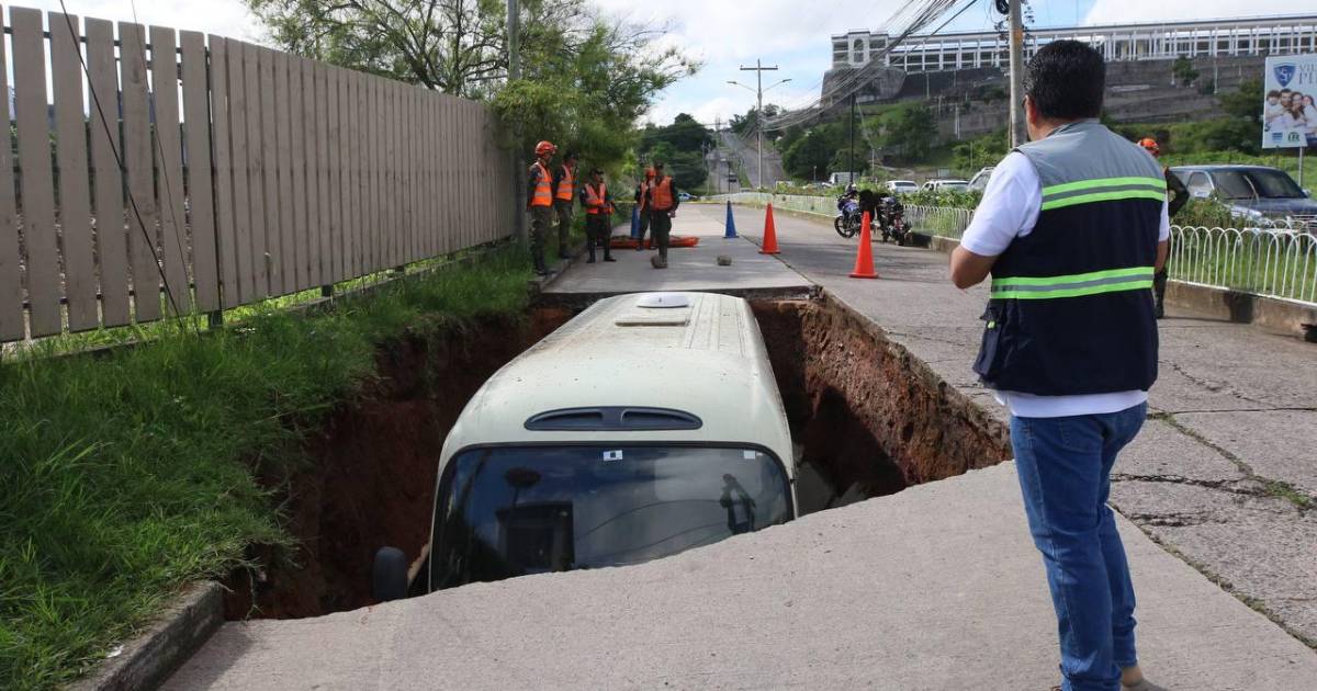 Imágenes del socavón donde cayó un bus en Tegucigalpa