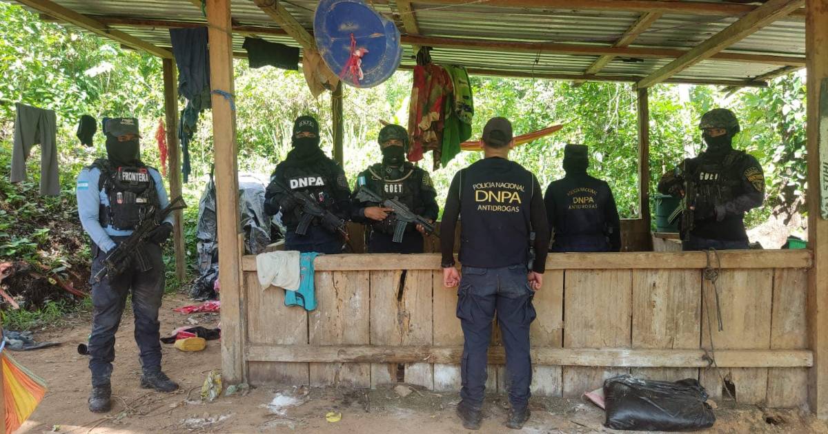 También encontraron un laboratorio rústico para extracción de pasta base de coca. La operación policial se llevó a cabo en una zona montañosa de la aldea Las Mangas del municipio de Iriona, Colón.