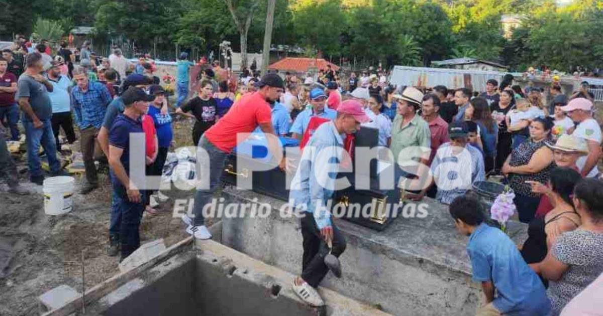 Centenares de familiares y amigos llegaron al cementerio de la comunidad de Loma Larga, en Colinas, Santa Bárbara para despedir a cinco de los seis vecinos del sector que murieron en el accidente del domingo.