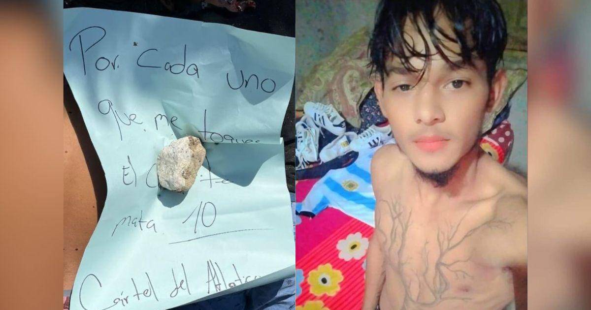 7 / 13”Por cada uno que me toques, el cartel te mata 10. Cartel del Atlántico”, fue el amenazante mensaje que fue dejado en una cartulina.