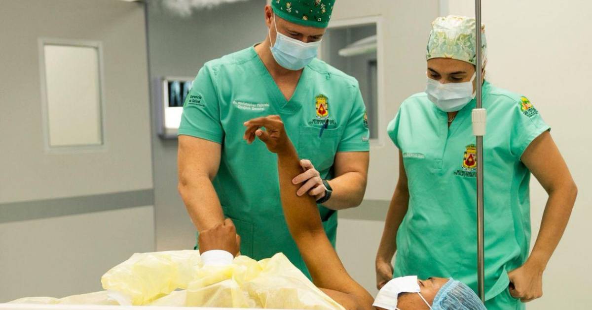 Elmer Eleazer Castro, un estudiante que en su rato libre trabaja como delivery en su motocicleta, fue operado con éxito este martes. Este es el momento en que estaba en el quirófano del Policlínico del Macro de Salud Las Palma.