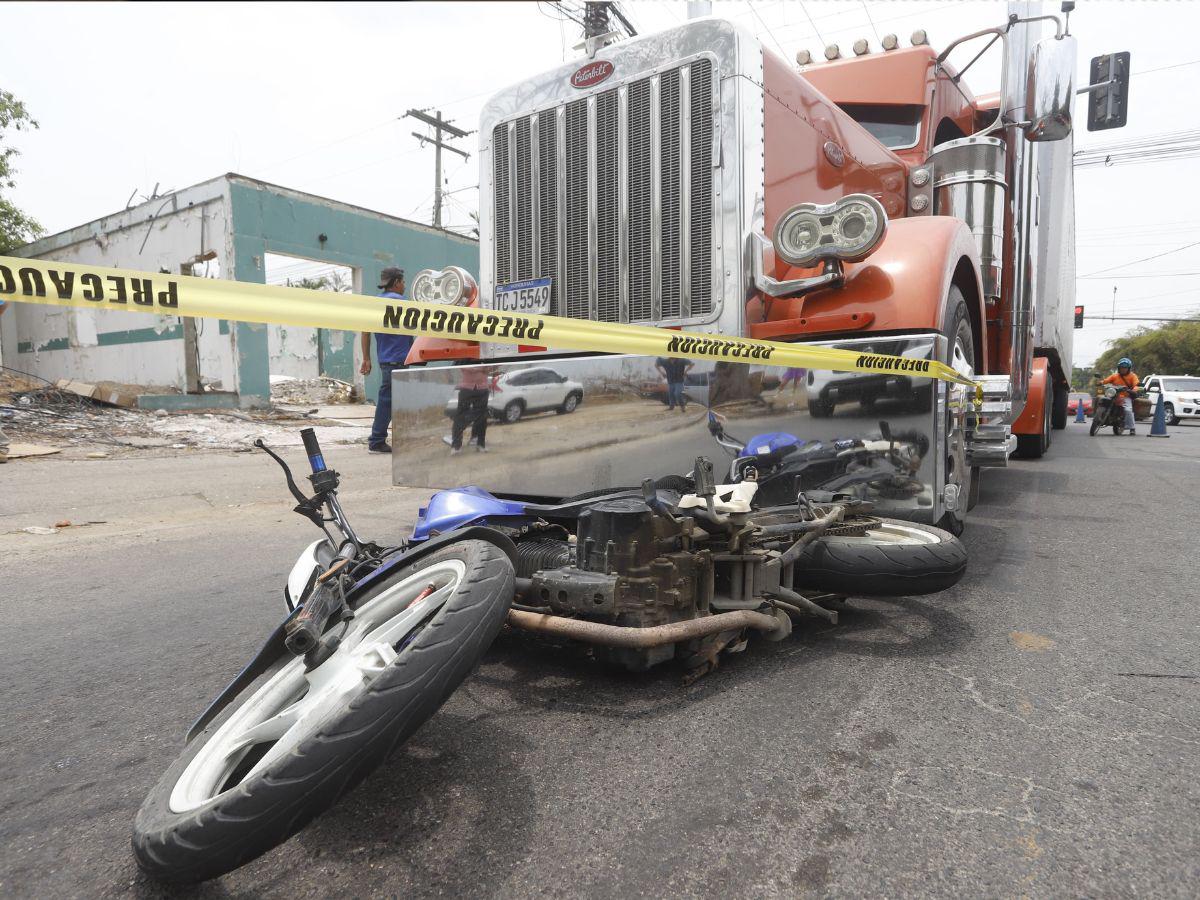 El moticlista y el conductor de la rastra subían la 20 calle de San Pedro Sula.
