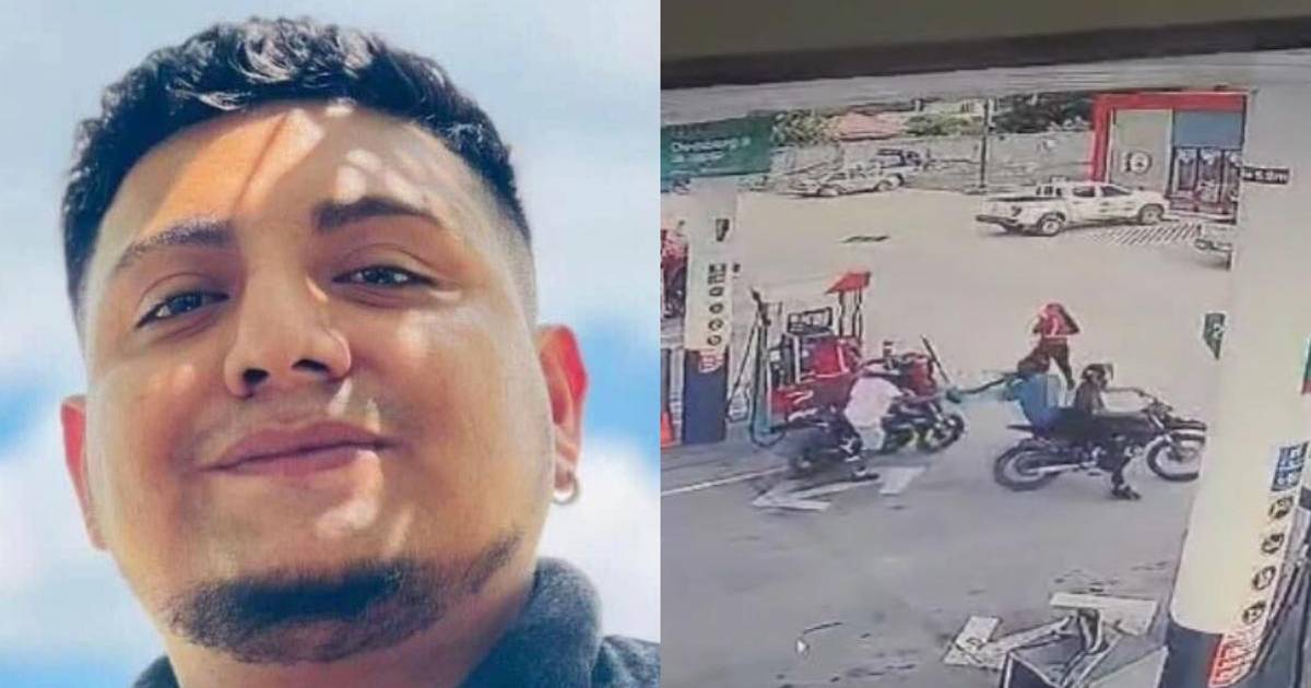 Cámaras de seguridad grabaron el momento en que dos sujetos llegan a la gasolinera a bordo de una motocicleta y le disparan a quemarropa al joven Edgardo Flores.