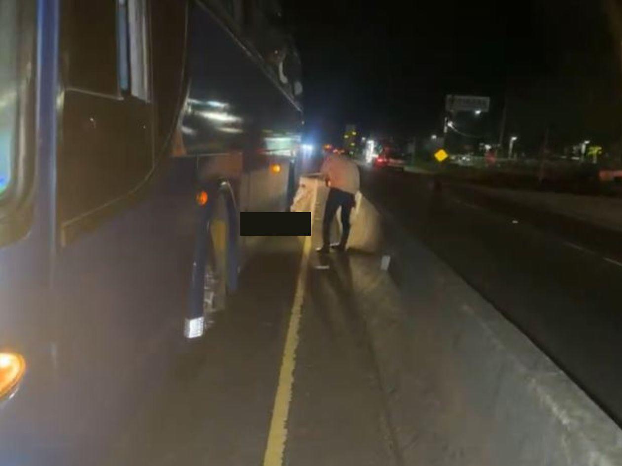 Un autobús los embistió en dicho sector, quedando uno de los cuerpos debajo de las llantas del pesado automotor.