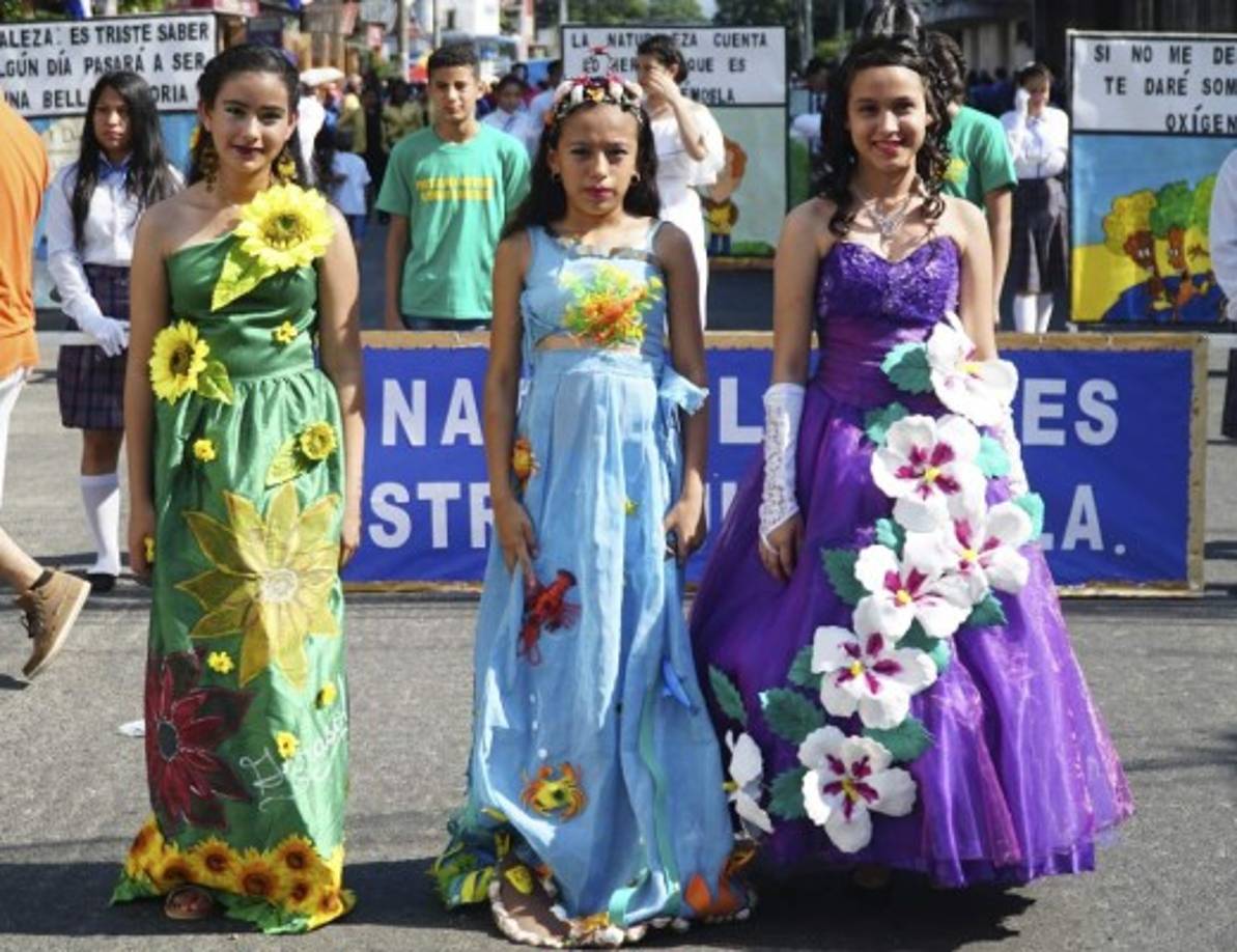 2 / 11Los alumnos de diversos centros educativos vistieron atuendos representativos de la cultura y folklore hondureño.