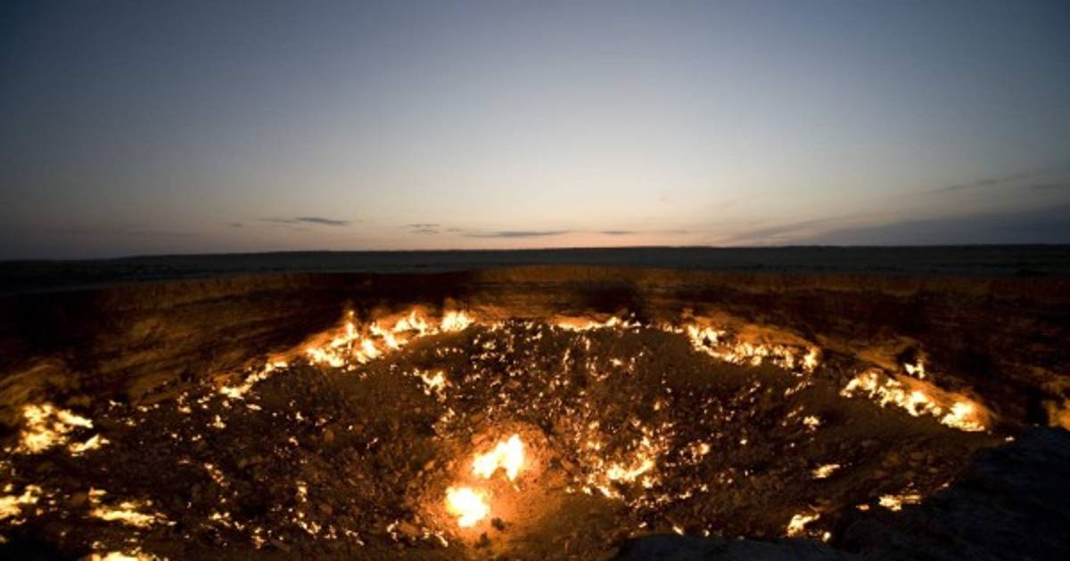 10 / 16Una de las mayores rarezas pero bellezas naturales de Turkmenistán es sin duda el pozo de Darvaza o cráter de Darvaza o mejor conocido como puerta al infierno, es una antigua prospección de gas ubicada en el desierto de Karakum, cerca de la pequeña aldea de Darvaza, en Turkmenistán.