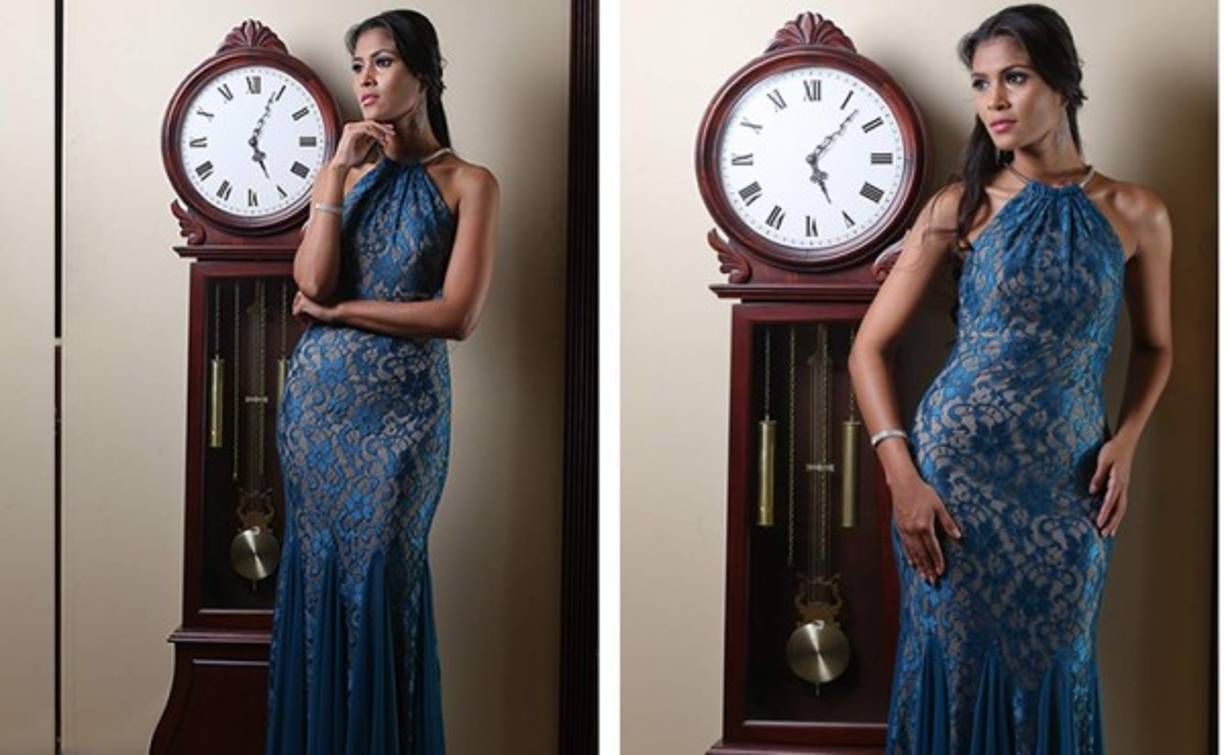 6 / 6Vestido en blonda verde aqua, con forro nude. El lazo plateado en el cuello halter le da un toque moderno y sofisticado. Fotos Yoseph Amaya/ Modelo Irina Zavala/ Lugar Clarion Suites Mediterraneo Hotel.
