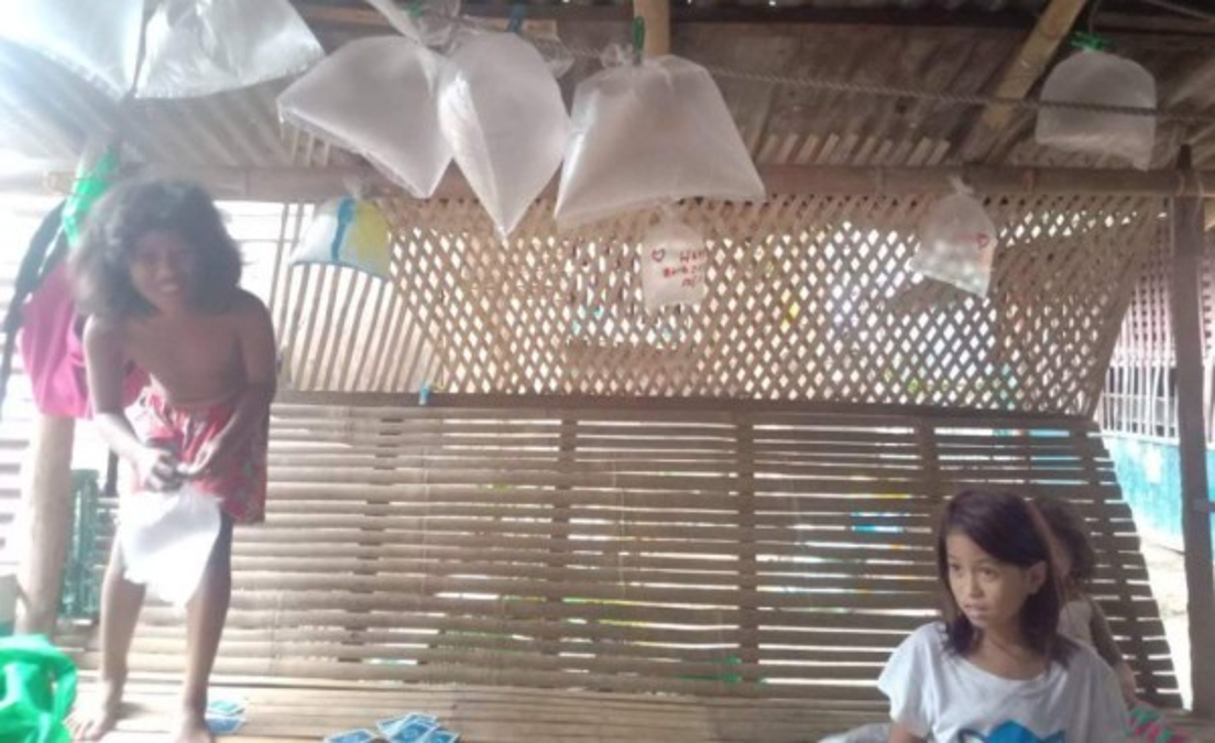 2 / 7La usuaria de Facebook Melody Silang subió algunas fotos donde se veía a los niños inflando las bolsas de plástico. -