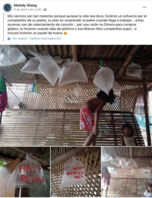 Unos niños de escasos recursos económicos se volvieron virales por celebrar el cumpleaños de su padre con bolsas de plástico como globos.