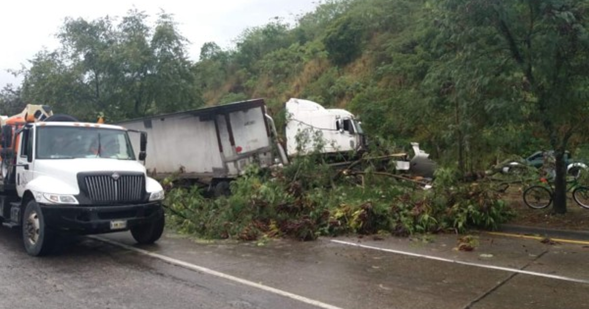 Afortunadamente solo se reportan daños materiales. Elementos del Cuerpo de Bomberos colaboraron con el corte de los árboles que obstaculizaban el paso por la vía.