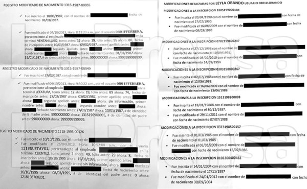 Las indagaciones apuntan que desde esa terminal se hicieron cambios irregulares a los números de inscripción de nacimiento siguientes: 0702-1998-00247, 0303-1988-00267, 1513-1998-00098, 1805-1990-00140, 0313-1985-00157 y la 0102-2004-00482.