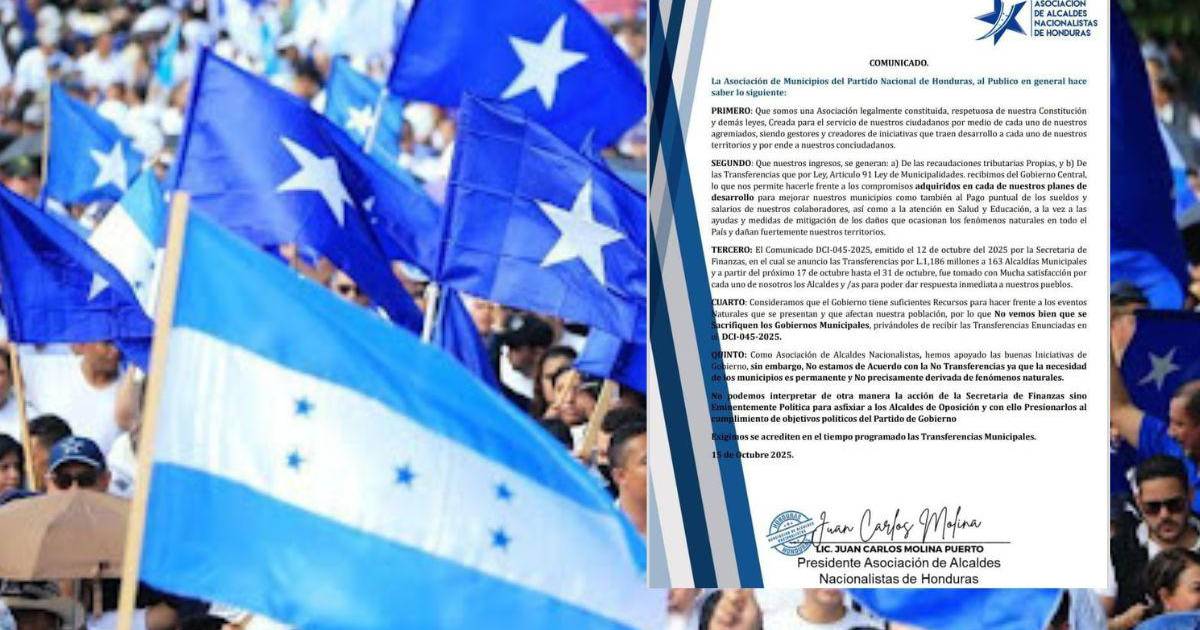 La Asociación de Municipios del Partido Nacional de Honduras (AMPNH) emitió un comunicado oficial en el que exige al Gobierno central cumplir con el pago de las transferencias municipales, al considerar que la falta de estos fondos afecta gravemente el funcionamiento de las alcaldías y el desarrollo local.
