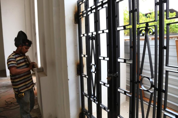 De las cinco entradas frontales que tiene el edificio, cuatro ya contaban con las puertas de metal ayer. Cubren la mitad de todo el espacio de cada acceso.