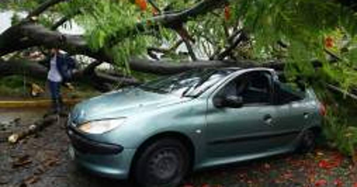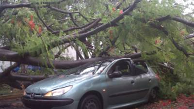 La fuerza del viento no perdonó. En cuestión de minutos los pobladores de este municipiogigantesco árbol cayó sobre un auto en el bulevar que conduce hacia la Universidad Nacional Autónoma de Honduras en el Valle de Sula (Unah-vs).