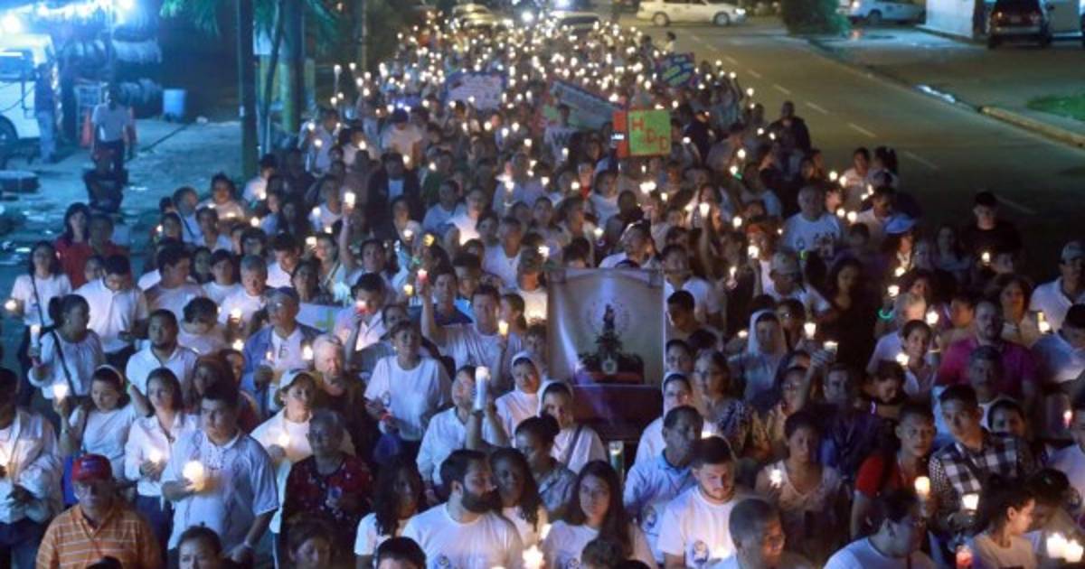 Centenares de feligreses llegaron hasta la iglesia San Pablo para iniciar desde ahí la peregrinación, recorrieron varias cuadras con velas encendidas y con una evidente demostraciones de fe.