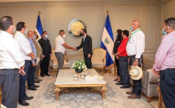 Momento en que los alcaldes hondureños eran recibido por el presidente de El Salvador, Nayib Bukele.
